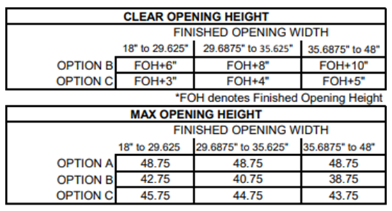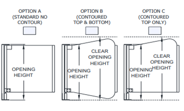 Option A (Standard, No Contour), Option B (Contoured, Top & Bottom), Option C (Contoured Top Only)